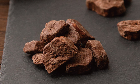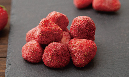いちごをフリーズドライ加工し、ホワイトチョコをしみ込ませました。爽やかないちごの酸味と、クリーミーなホワイトチョコの甘さを併せ持つスウィーツです。