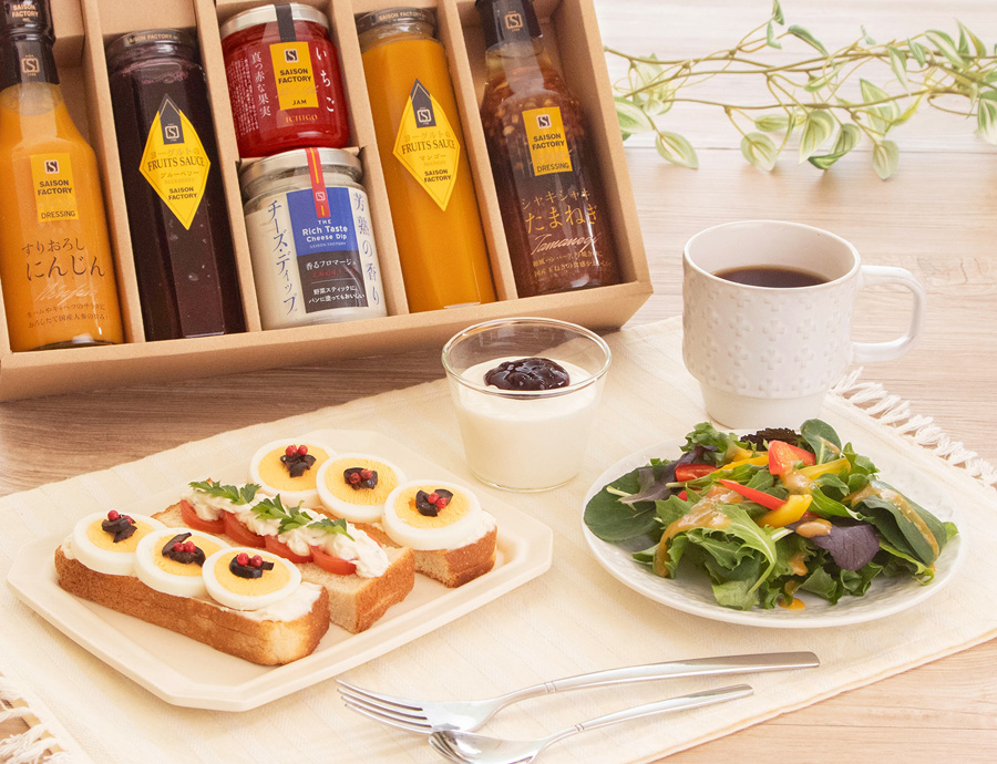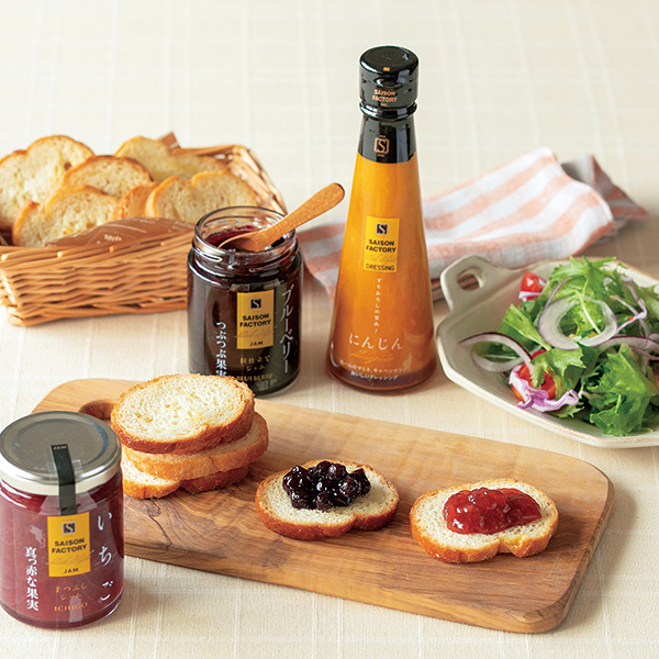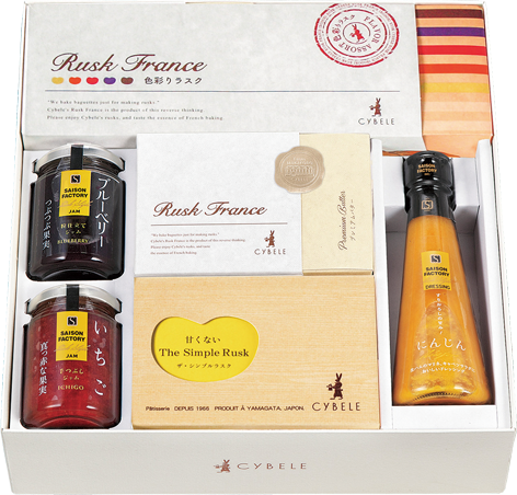 セゾンファクトリーの定番ジャム、ドレッシングに加え、シベールの定番ラスク詰合せや素焼きの「ザ・シンプルラスク」をセットにしました。