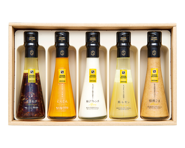 定番人気ドレッシングのにんじんとたまねぎに、カルパッチョなどにもお使いいただけるさっぱりとしたレモン、柚子の優しい香りと爽やかな酸味がおいしい柚子フレンチと、ごまの香りがおいしい焙煎ごまを加えた、お料理のバラエティー広がるドレッシングギフト。