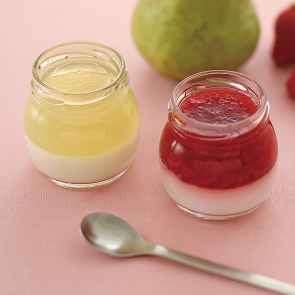 やさしい酸味のすっきりとしたいちごゼリーと上品な甘みのラ・フランスゼリーに、果実によく合うクリームチーズを合わせた2層デザートの詰合せです。