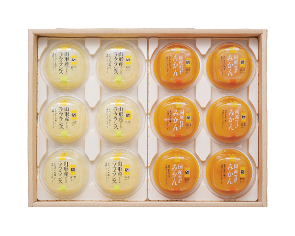 山形県産ラ・フランスゼリーと、国産みかんゼリーの詰合せ。国産果実のおいしさを存分に味わっていただける詰合せです。