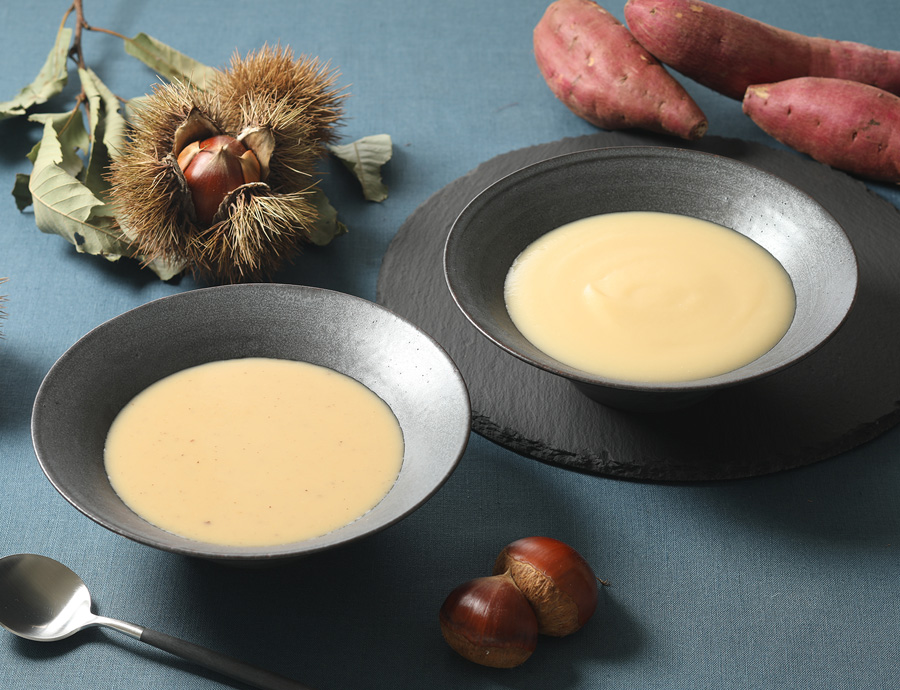 茨城県産笠間の栗と紅はるかを使用した濃厚でなめらかなポタージュの詰合せ。素材選びから煮込む調理法までこだわり、素材の魅力を余すことなく引き出し、丁寧に作り上げたポタージュをギフトにしてお届けいたします。
