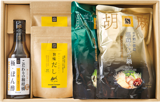 様々な料理に合わせやすいだしパックに、冬の食卓にぴったりな鍋つゆとぽん酢の詰合せです。