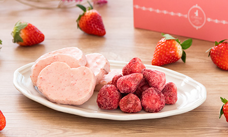 いちごをフリーズドライ加工し、ホワイトチョコをしみ込ませました。爽やかないちごの酸味と、クリーミーなホワイトチョコの甘さを併せ持つスウィーツです。