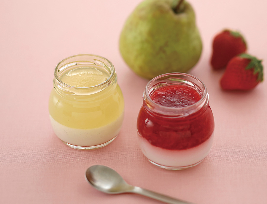 やさしい酸味のすっきりとしたいちごゼリーと上品な甘みのラ・フランスゼリーに、果実によく合うクリームチーズを合わせた2層デザートの詰合せです。