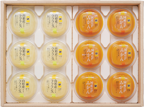 山形県産ラ・フランスゼリーと、国産みかんゼリーの詰合せ。国産果実のおいしさを存分に味わっていただける詰合せです。