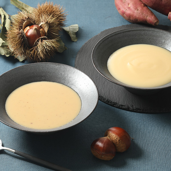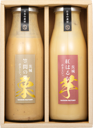 茨城県産笠間の栗と紅はるかを使用した濃厚でなめらかなポタージュの詰合せ。素材選びから煮込む調理法までこだわり、素材の魅力を余すことなく引き出し、丁寧に作り上げたポタージュをギフトにしてお届けいたします。