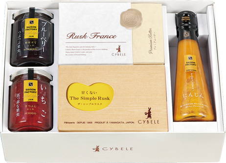 セゾンファクトリーの定番ジャム、ドレッシングに加え、シベールの定番ラスク詰合せや素焼きの「ザ・シンプルラスク」をセットにしました。
