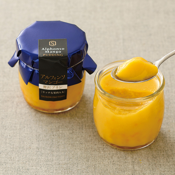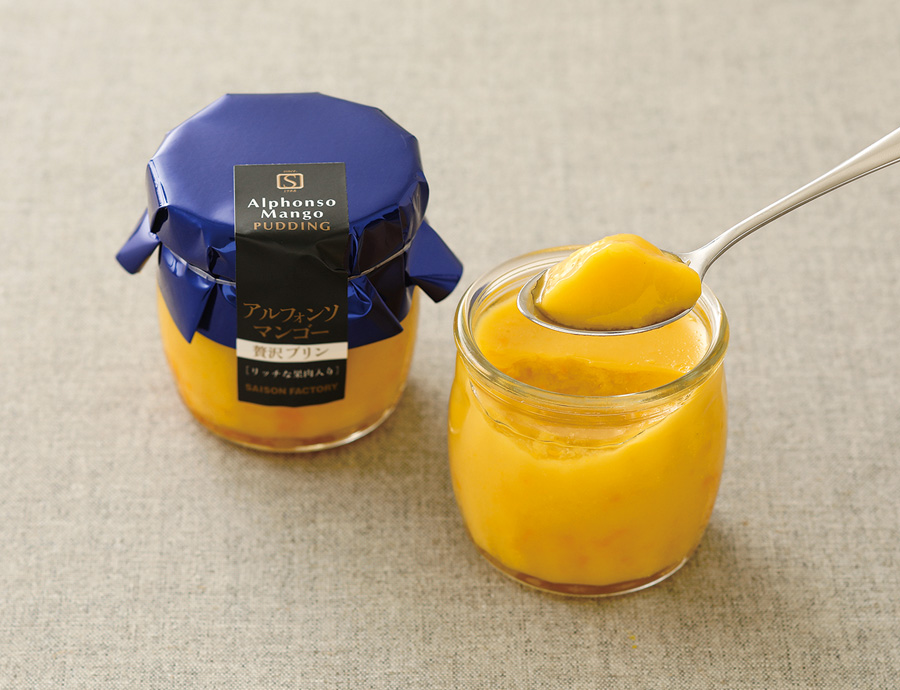 アルフォンソマンゴーを使用したプリンの詰合せ。マンゴーの果肉が入ったリッチな味わい。口の中でとろけるような滑らかな食感です。